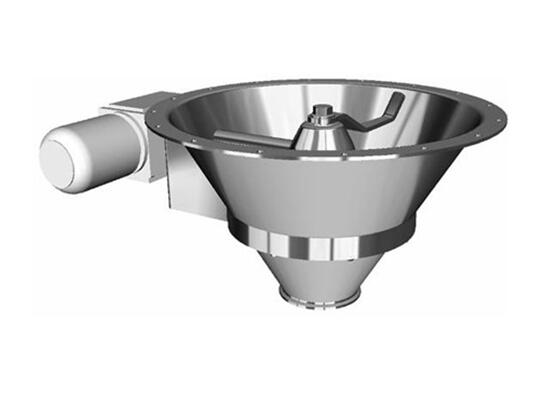 攪拌料斗的主要目的是為了將壓實(shí)的物料通過(guò)低速攪拌變成松散狀態(tài),以方便下一步的輸送和包裝。工作時(shí)通過(guò)電動(dòng)機(jī)帶動(dòng)垂直設(shè)置在攪拌倉(cāng)內(nèi)的攪拌軸旋轉(zhuǎn),軸上安裝攪拌漿葉,轉(zhuǎn)軸帶動(dòng)漿葉對(duì)倉(cāng)內(nèi)物抖進(jìn)行剪切、擠壓和翻轉(zhuǎn)推移的強(qiáng)制攪拌作用。使物料在相對(duì)運(yùn)動(dòng)中得到攪拌和疏松。