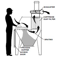 操作人員將料袋放在支架上,并將其推入柵格內。接著,操作人員將料袋劃開一個豎向的口子,并傾倒抖動料袋使其清空,物料靠動力落入料斗內, 并且可通過底部的輸送管道與輸送設備進行連接,將物料有效輸出到指定位置。內置的引風收塵過濾器可以對料袋清空過程中生產的粉塵進行收塵。其過濾器是通過反向壓縮空氣噴射來清潔的,清下的粉塵又落回到料斗內,可實現連續不間斷的投料。